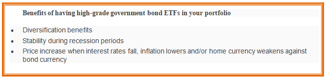 Investors value high-grade government bonds because they are the best available complement to equities; they tend to be more stable than equities and often perform better during recessions which can reduce portfolio losses in a crisis and prevent investors from panicking when equities plunge.
