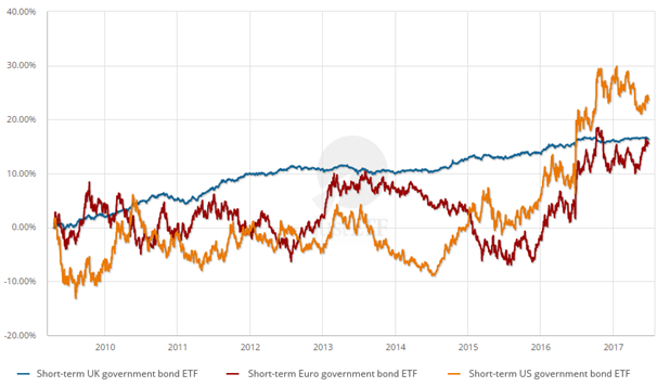 Short-term UK vs. short-term foreign currency government bond ETFs