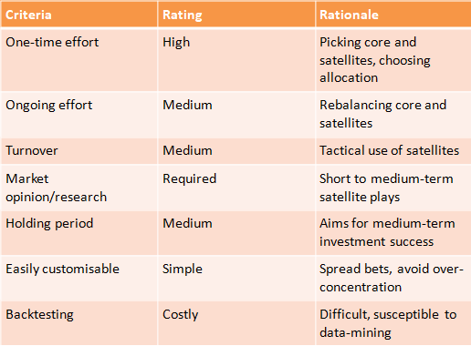 But will the Core-Satellite strategy suit your style? Yes, if you are an engaged investor who likes to express their market views through their portfolio and wants a shot at the win-win-win of greater diversification, low costs and the potential for higher risk-adjusted returns.